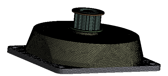 对结构进行有限元网格划分,划分有限元网格时,在可能的应力集中部位做网格加密处理,单元类型为混合单元(四面体和六面体),网格数量见表2(略),网格效果图见3。