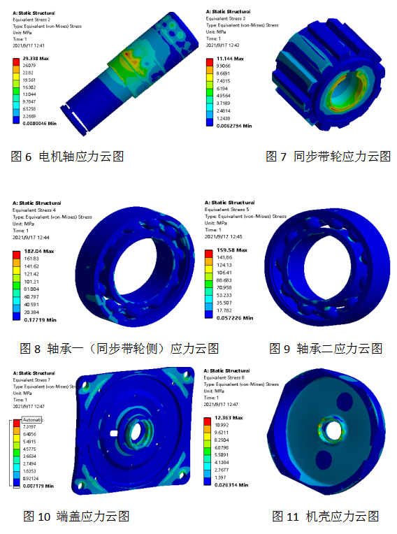 1)在XXN静态力工况下,结构薄弱点在电机轴中段XX处,结构最大Von-mise应力未超过材料屈服强度,结构设计合理;